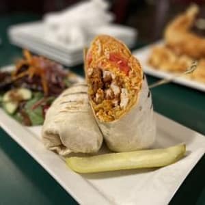Breaded chicken tenders tossed in our signature Buffalo sauce, Cheddar & Mozzarella blend, lettuce, and tomatoes wrapped and grilled in a flour tortilla. Served with choice of fresh cut fries or garden salad.